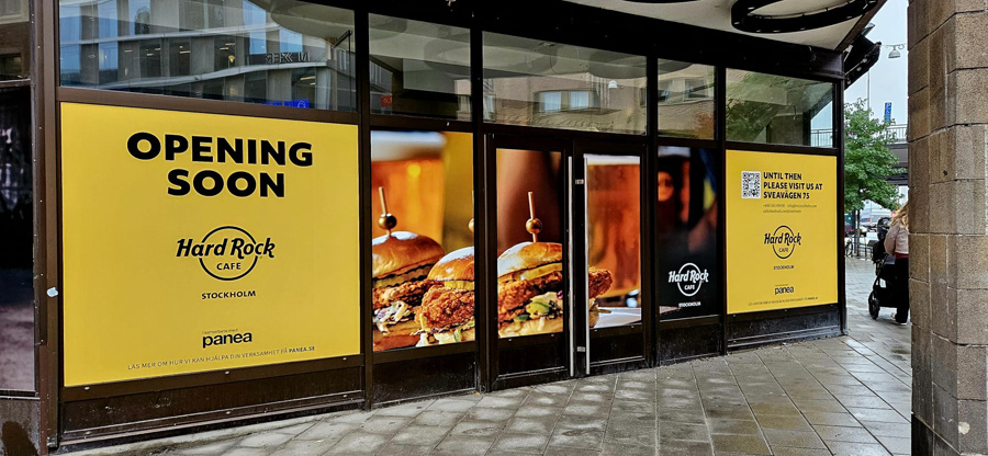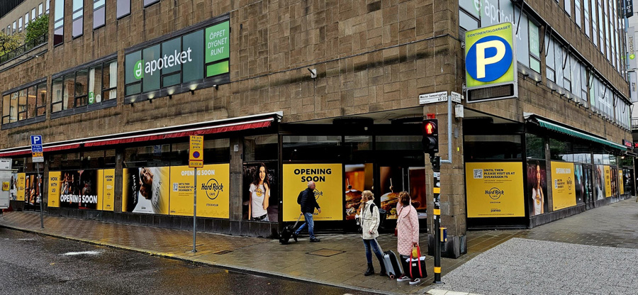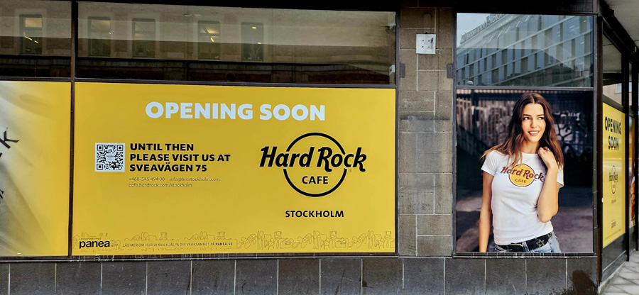 The following three photos show the “Coming Soon” advertising for the new Hard Rock Cafe Stockholm location.