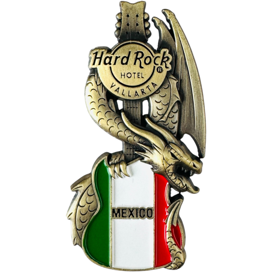 Below you’ll find the Hard Rock Hotel Vallarta Core Dragon and Flag Guitar Pin and